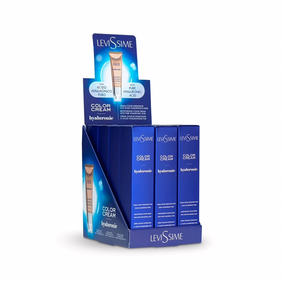 LEVISSIME Color Cream Hyaluronic Display / Getönte Hyaluron-Gesichtscreme im Verkaufsdisplay 12x 50 ml