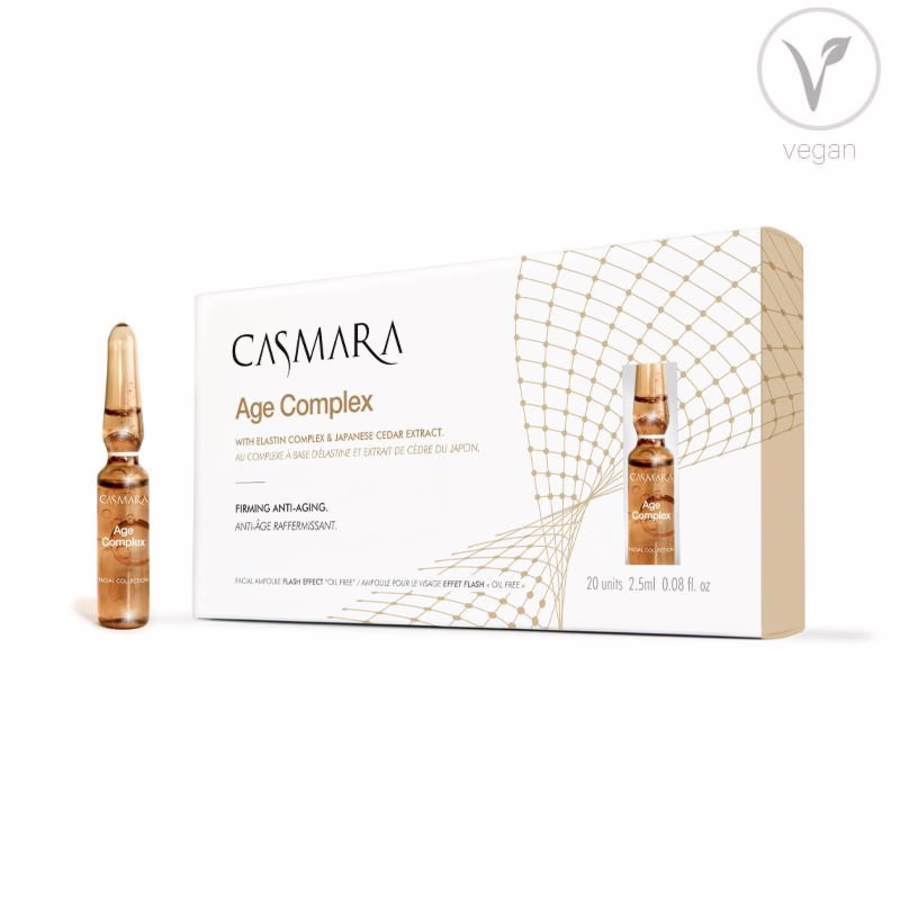 Jetzt Preis melden & prüfen lassenOb Tag oder Nacht, für einen besonderen Anlass oder das Wellnesserlebnis zwischendurch – die Casmara Age Complex Ampoules bieten Ihrer Haut immer das besondere Extra an Pflege! Die veganen Anti-Aging-Ampullen sind mit japanischem Zedern-Extrakt angereichert, der die Zellerneuerung ankurbelt und Fältchen reduziert. Außerdem wird der natürliche Feuchtigkeitsgehalt der Haut sichtbar gesteigert. Der ebenfalls enthaltene Elastin-Komplex verleiht der Haut Elastizität und Festigkeit, reduziert die Faltentiefe und verhindert gleichzeitig das Entstehen neuer Falten. Das Ergebnis: straffe, glatte und strahlende Haut.