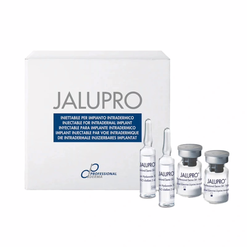 Jalupro Classic ist ein innovativer Skinbooster, der mit einer Kombination aus 4 Aminosäuren (Glycin, L-Prolin, L-Leucin, L-Lysin) und Hyaluronsäure die Hautstruktur sichtbar verbessert. Ideal geeignet bei lichtgeschädigter und fahler Haut, Dehnungsstreifen sowie feinen bis mitteltiefen Falten.