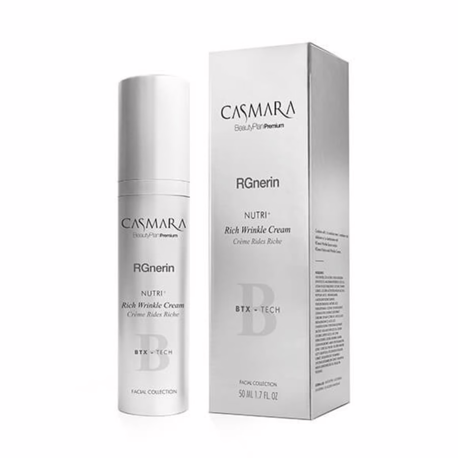 Die Casmara RGnerin Nutri+ Rich Wrinkle Cream ist mehr als nur ein Mittel gegen Fältchen. Die Tages- und Nachtcreme vereint intensive Nährstoffpflege mit hautverjüngender Botox-Technologie.