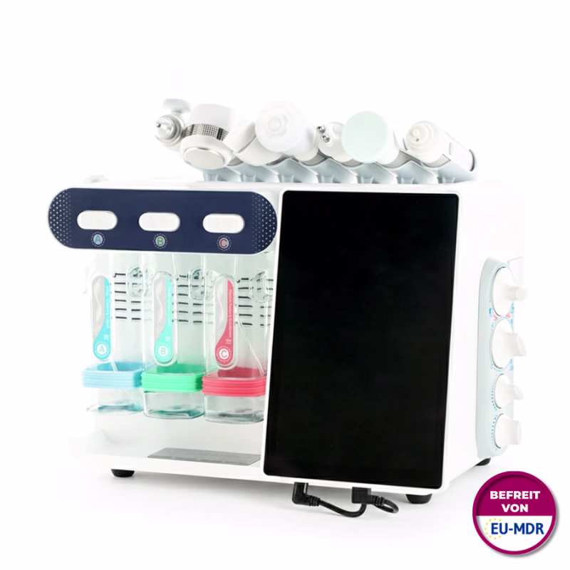 Aqua-Peeling, Ultraschall, Skin Scrubber – es gibt viele hochwirksame Methoden zur Hautpflege. Das HydraPeel Plus vereint 8 der beliebtesten Facial-Behandlungen in einem Gerät: Hautanalyse, Aqua-Peeling, Ultraschall, Skin Scrubber, Warm- und Kalt-Hammer, Radiofrequenz, Sauerstoffbehandlung und Wasserstoff-Behandlung. Ideal für maßgeschneiderte Anwendungen für jedes Hautbedürfnis!