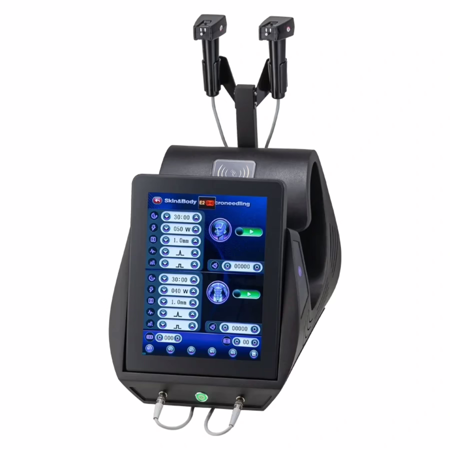 Mit zwei ergonomischen Handstücken ermöglicht das Face&Body RF Microneedling M flexible Behandlungen für Gesicht und Körper. Dank intuitiver Benutzeroberfläche und einem großen 15,6-Zoll-Touchdisplay lassen sich alle Einstellungen – von der Nadeltiefe bis zur Energieintensität – individuell anpassen.