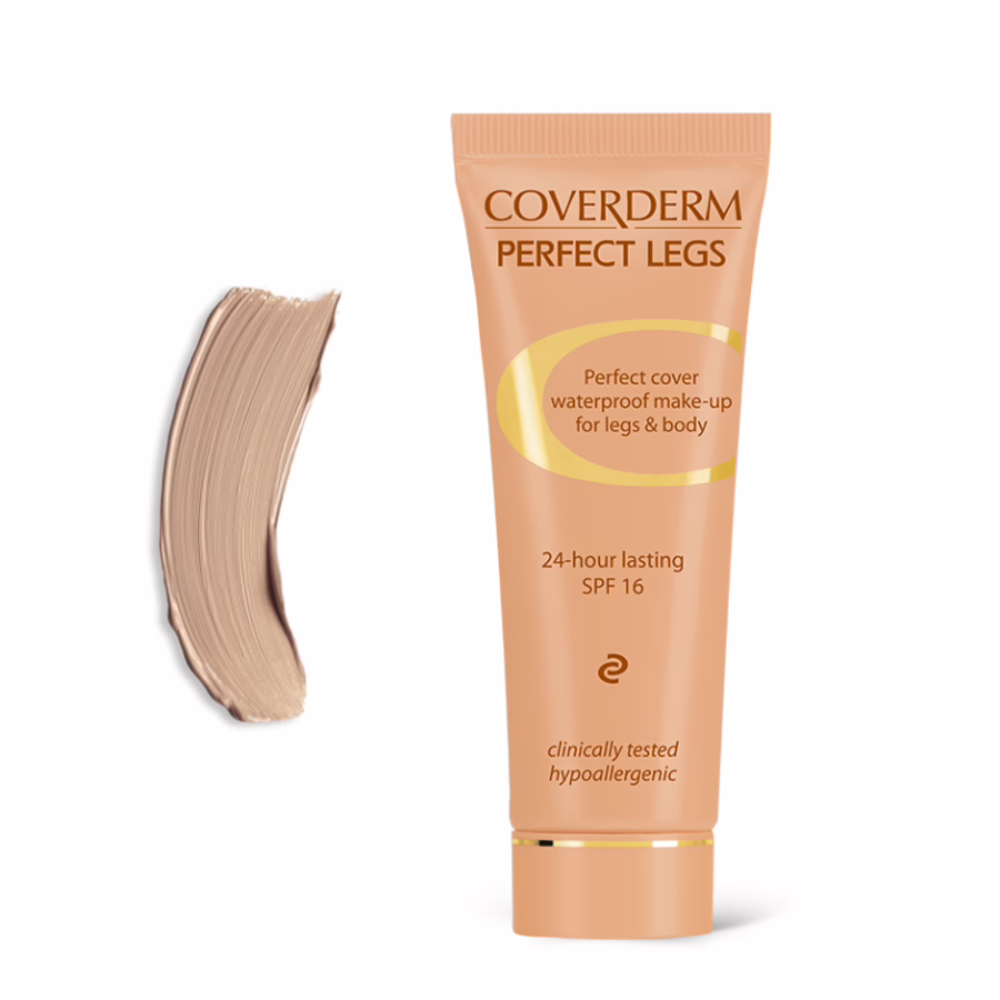 Neben der perfekten Kaschierung von Unebenmäßigkeiten bietet Coverderm Perfect Legs einen leichten Sonnenschutz (LSF 16) und verhindert somit eine vorzeitige lichtbedingte Hautalterung.