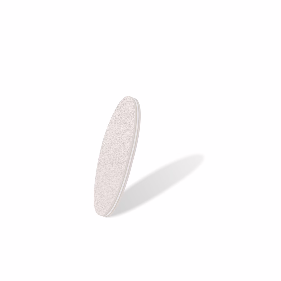 Dafür ist der Mini Buffer da. Er entfernt Rauheit und Kratzer, wegen dem sich unter dem Gel kleine Luftbläschen bilden können und sorgt dafür, dass es richtig haften kann. Mit der feinen 100/180er-Körnung wird die Nageloberfläche schonend geglättet. Dabei ist die Ellipsenform des Buffers besonders praktisch, denn mit der breiten Form kann eine große Fläche des Nagels in kürzester Zeit bearbeitet werden. Das Arbeiten nah an der Nagelhaut ist mit den runden Seiten des Buffers ein Kinderspiel und lässt Sie jede kleine Stelle erreichen. Außerdem liegt das Produkt durch die kleine Größe gut in der Hand und eignet sich sehr gut für den Einweg-Gebrauch.