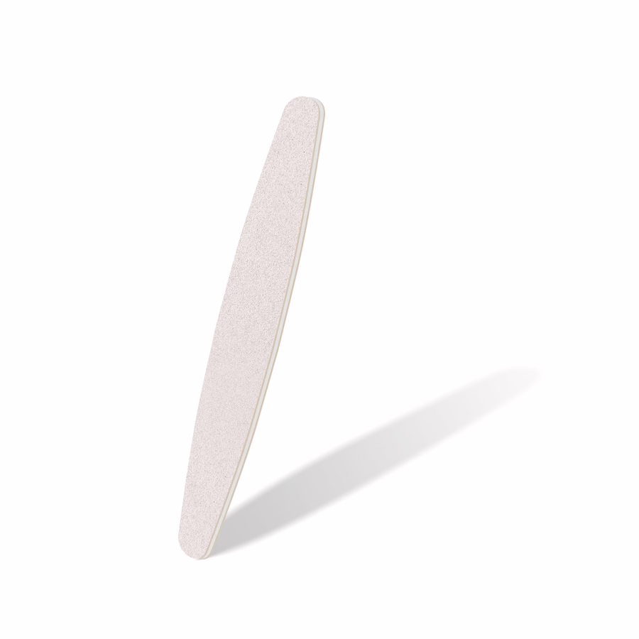 Die Ellipsenform des Produkts sorgt für einen sicheren Halt in der Hand und kann durch großzügige Bewegungen eine breite Fläche feilen. Außerdem helfen Ihnen die Abrundungen, nah an der Nagelhaut zu arbeiten und ganz präzise auch die kleinste Stelle zu erreichen.
