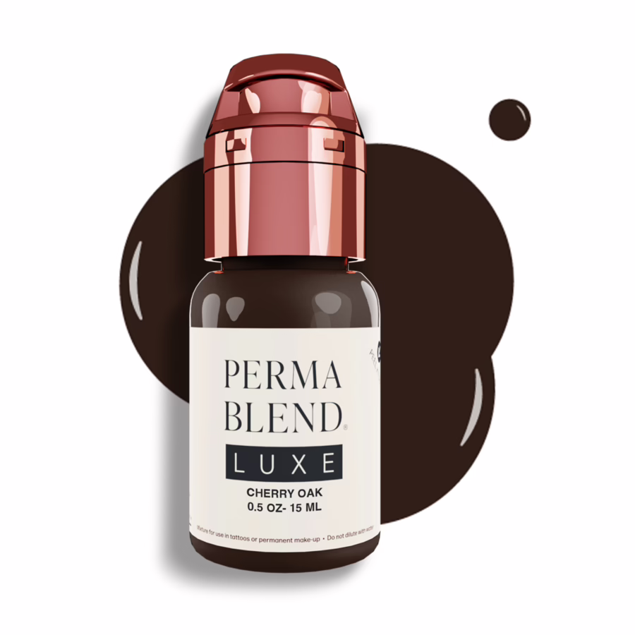 Dieses Pigment bietet einen herrlich dunkelbraunen Farbton mit erdig-roten Untertönen. Trotz des roten Anteils ist Cherry Oak ein sehr kühler Farbton, weshalb Perma Blend ihn auch in der Kategorie „Cooler & Darker“ (kühler & dunkler) im eigenen Farbspektrum einsortiert. Diese Nuance schmeichelt vor allem den Hauttypen 4, 5 und 6 nach Fitzpatrick, kann aber bei jedem verwendet werden.
