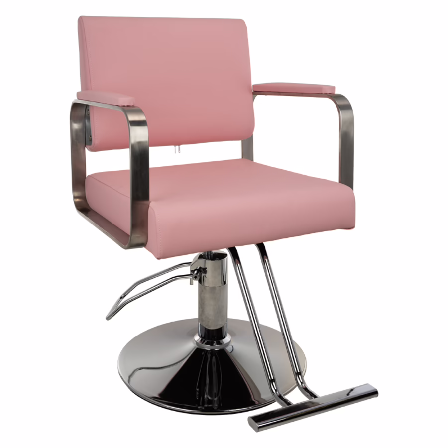 Stilvolles Design mit klaren Linien und einem trendigen Farbakzent – all das vereint der moderne Friseurstuhl in Pink.