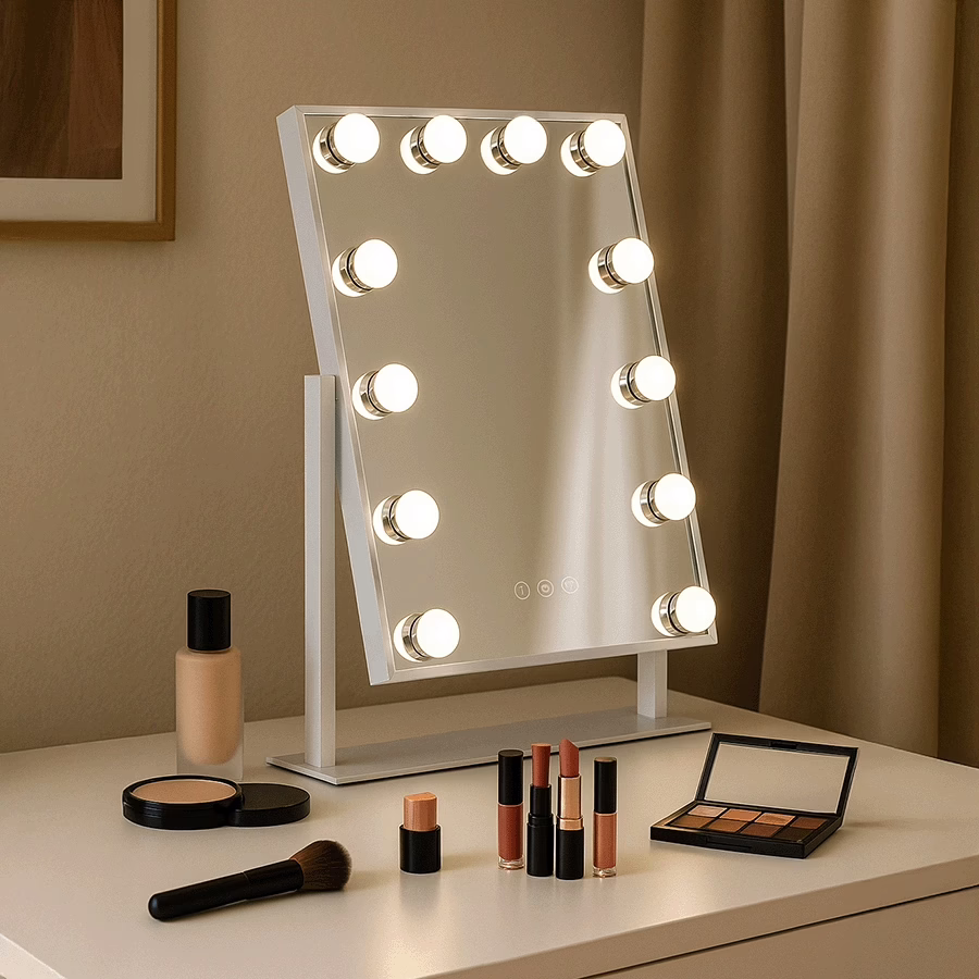 Der Hollywood-Spiegel sorgt bei der Vorbereitung auf Ihren Moment im Rampenlicht nicht nur für die richtige Atmosphäre, sondern auch für beste Lichtverhältnisse.