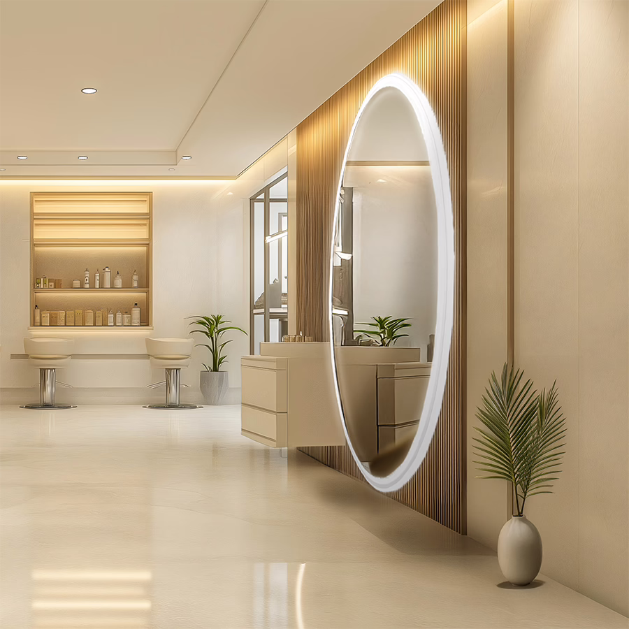 Macht ganz schön was her in Ihrem Salon: der ovale Wandspiegel mit LED-Leuchtstreifen!