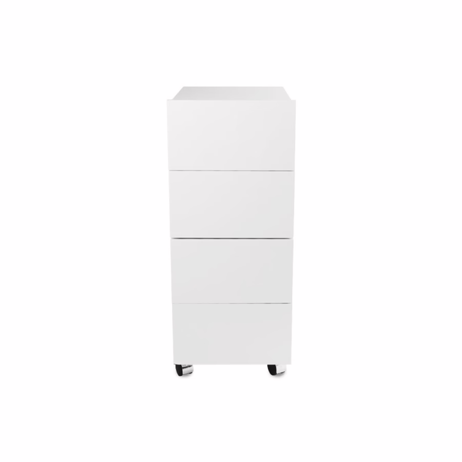 Durch seine Rollen ist das Möbelstück beweglich und lässt sich bequem an dem Ort positionieren, wo es während der Behandlung gebraucht wird. Dank seiner schlanken Maße von 35 cm x 45 cm x 115 cm (L x B x H) nimmt das mobile Schubladenschränkchen nur wenig Platz in Anspruch.