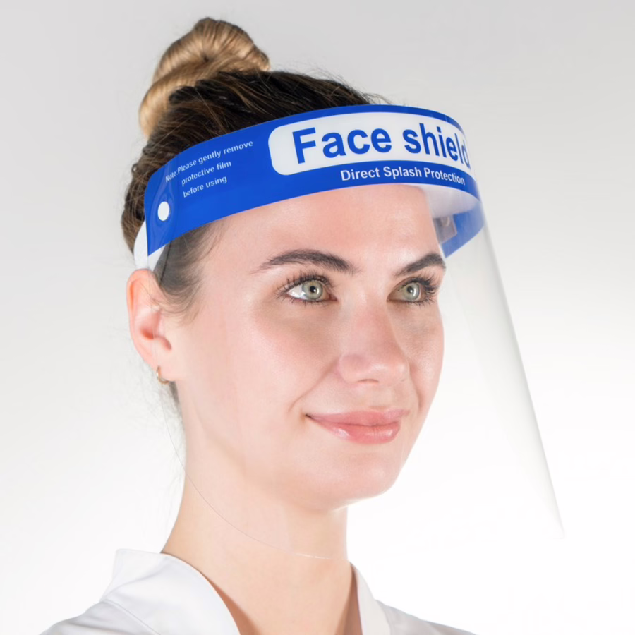 Der Schutzschild ist besonders leicht zu reinigen und kann mehrmals wiederverwendet werden. Unter der Maske staut sich keine Wärme, so dass es sich wie gewohnt atmen lässt. Der durchsichtige Kunststoff macht den Gesichtsausdruck weiterhin für ihre Kunden erkennbar. Wir empfehlen zusätzlich einen Mund-Nase-Schutz für Anwendungen, in denen der Mindestabstand von 1,5 m nicht eingehalten werden kann.