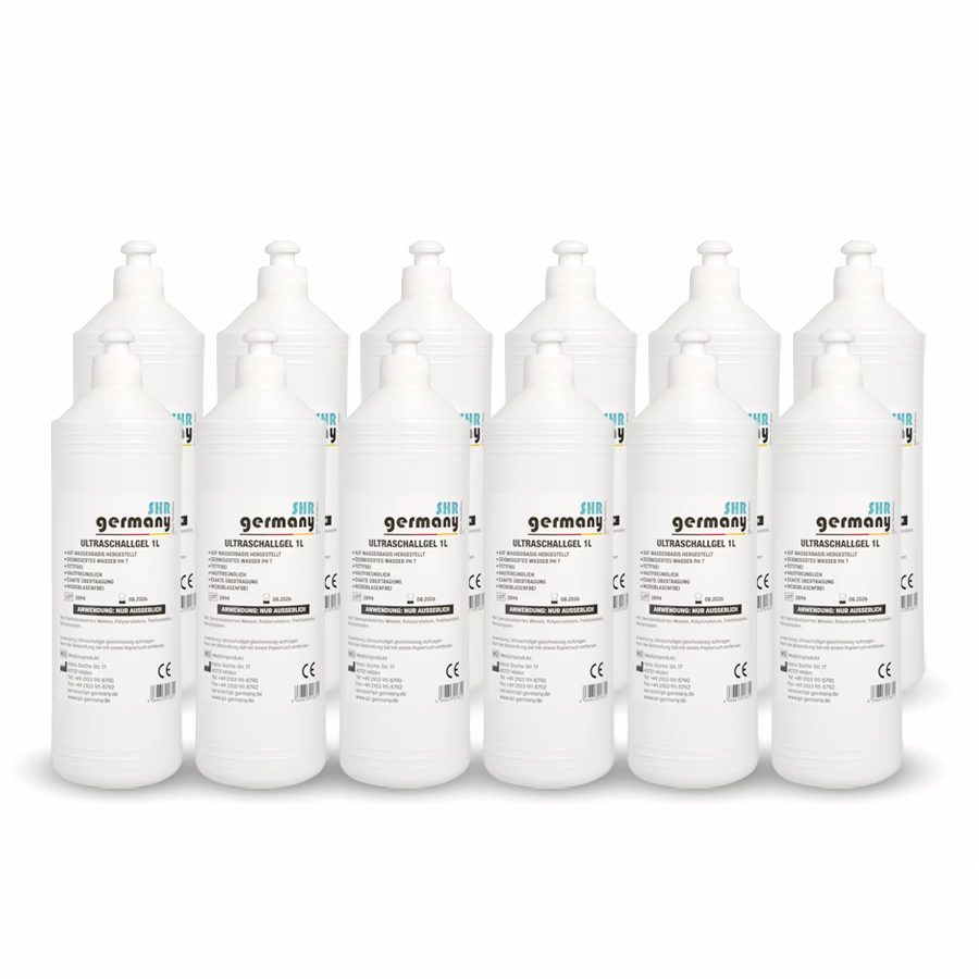 Mit 12 Flaschen mit jeweils einem Liter des SHR Germany Ultraschall-Gels sind Sie bestens ausgerüstet, um zahlreiche Kunden glücklich zu machen. Lassen Sie sich das Angebot nicht entgehen und entdecken Sie weitere Rabatte im SHR Onlineshop!