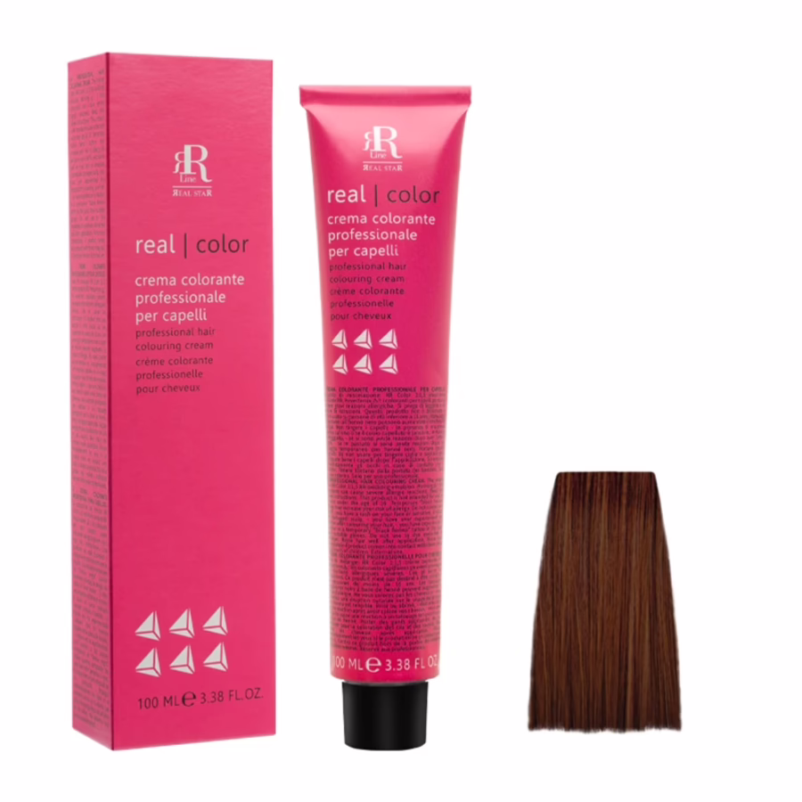 Mischen Sie die Coloration in einem Verhältnis von 1:1,5 mit der Real Star Oxidationsemulsion. Auf das trockene und ungewaschene Haar auftragen. Beachten Sie die Anweisungen des Beipackzettels für Sicherheitshinweise und Information über die Einwirkdauer.