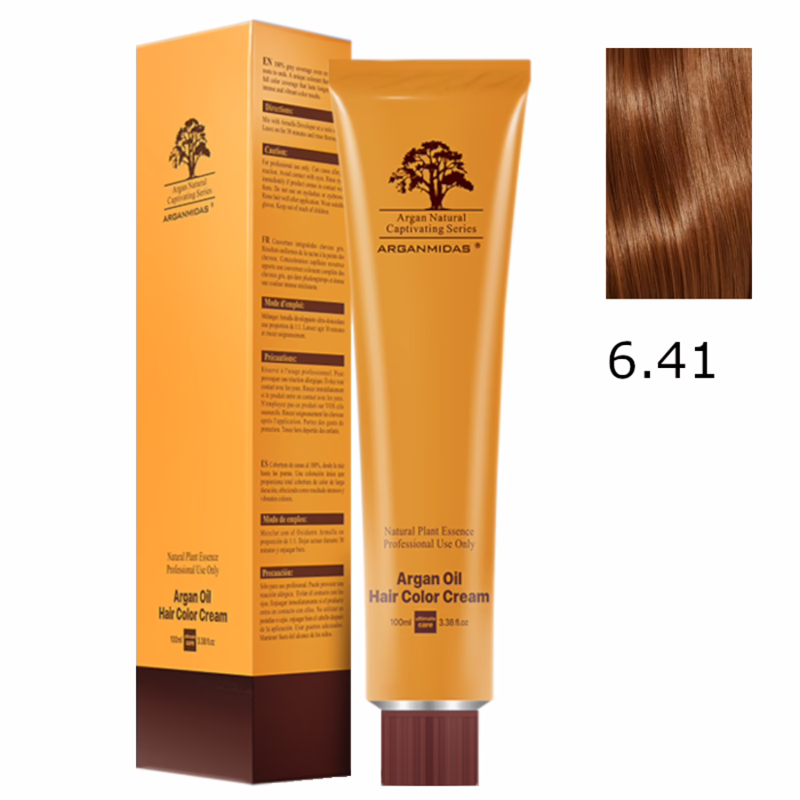 Mysteriös und unschlagbar schön: Verleihen Sie den Haaren Ihrer Kunden eine kühle, geheimnisvolle Note mit der Arganmidas Moroccan Argan Oil Hair Color Cream 6.41 Dark Ash Copper Blonde!