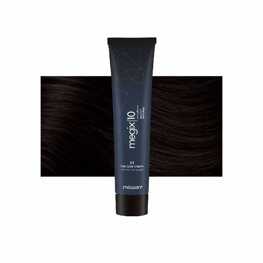 Schwarzhaarige Menschen kennen das Problem: Ergrautes Haar wird in der ansonsten dunklen Mähne oft deutlich sichtbar. Um es zuverlässig abzudecken – ohne das Haar zu schädigen – braucht es ein schonend wirkendes Haarfärbemittel. Mit der Haarfarbe 1.0 Schwarz aus der Mowan Megix10-Reihe können Sie Ihren Kunden ihre natürliche Haarfarbe zurückgeben – für einen frischeren, jugendlicheren Look!