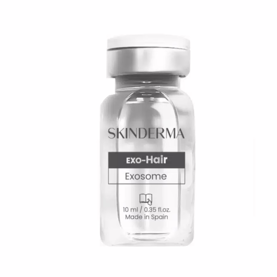 Ob glatt, wellig oder lockig – Skinderma Exo-Hair ist für jeden Haartyp geeignet und bietet bei verschiedenen Problemen eine Lösung. Es nutzt Exosome die eine wichtige Rolle in der Zellkommunikation spielen, sowie aktive Inhaltsstoffe, die gemeinsam eine besondere, verjüngende Wirkung auf der Kopfhaut entfalten. Entwickelt, um Haarausfall oder androgenetischer Alopezie (Haarausfall durch männliche Hormone) entgegenzuwirken und das Haarwachstum zu fördern, bietet diese reichhaltige Haartherapie einen entzündungshemmenden Effekt. Die pflegenden Inhaltsstoffe verleihen dem Haar neue Kraft und Widerstandsfähigkeit.