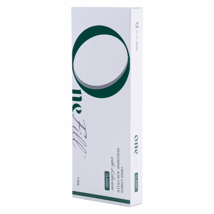 OneFill Classic ist ein Dermal-Filler, der auf hochkonzentrierter Hyaluronsäure (24 mg/ml) basiert. Injiziert in die Haut, füllt der Filler Linien und Falten in Sekundenschnelle wieder auf und lässt den Teint um Jahre jünger aussehen.