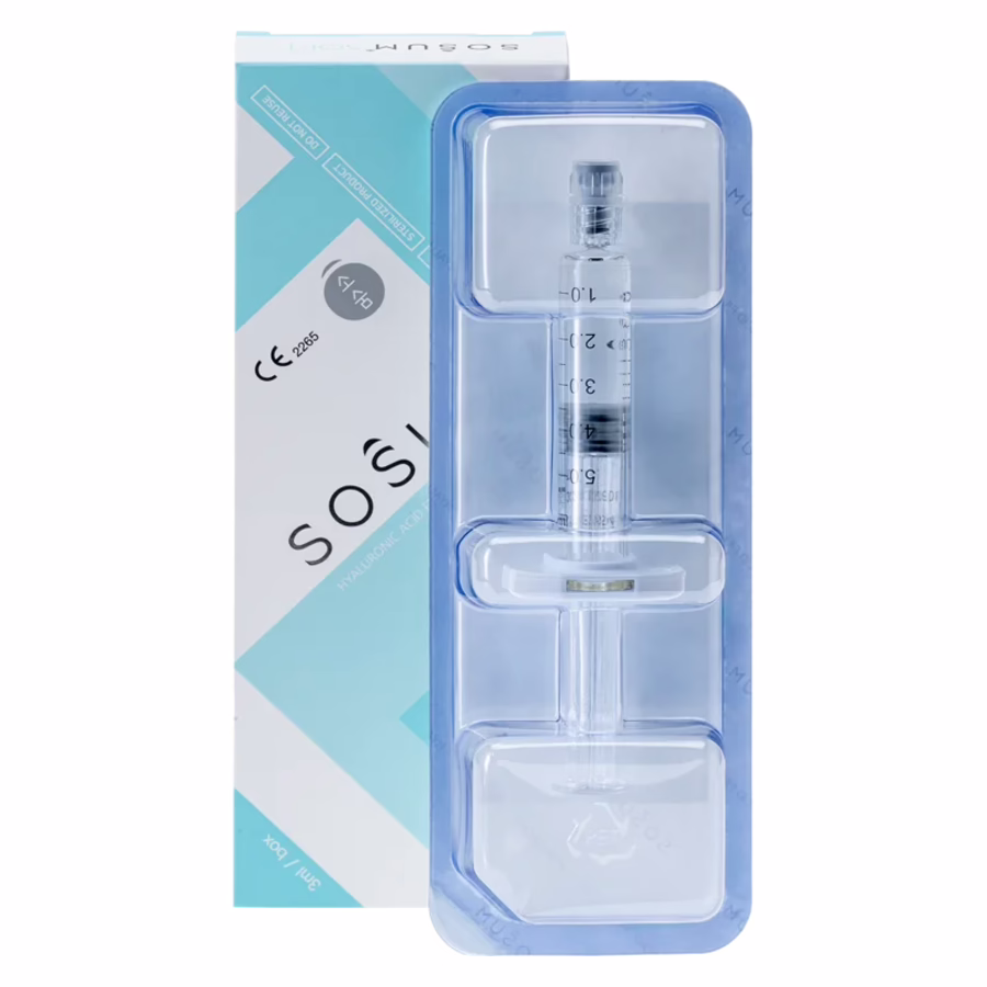 Der Dermal-Filler zählt zu den besten HA-Fillern auf dem Markt. Er enthält 15 mg/ml Hyaluronsäure (HA). Dank der neuesten Vernetzungstechnologie haben die HA-Moleküle eine besonders hohe Dichte und feine Molekularstruktur und gewährleisten eine gleichmäßige und schmerzfreie Verteilung des Füllstoffs. Injiziert in die Haut verleiht Sosum Soft eine wunderbare Glätte und Geschmeidigkeit. Das Hautbild erscheint nach nur einer Anwendung deutlich verbessert.