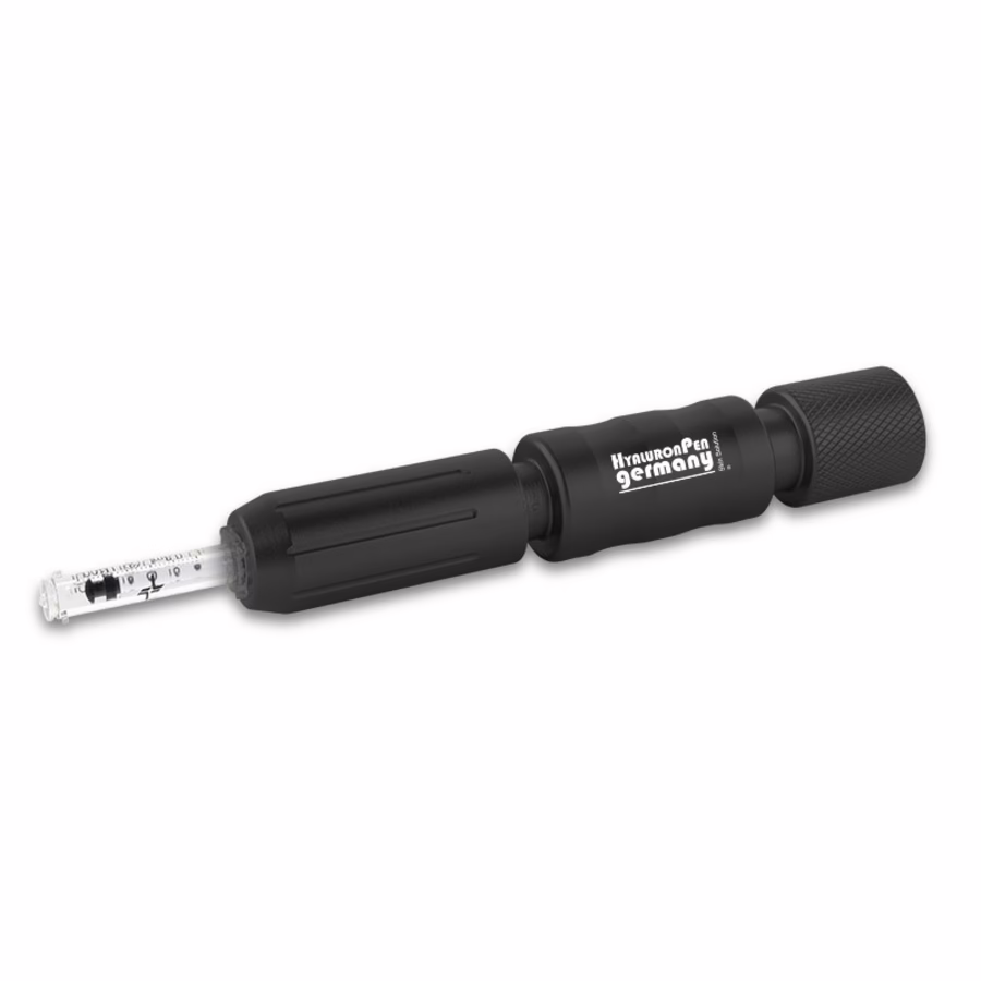 Der entscheidende Vorteil des Hyaluron Pen Germany 2022 in Schwarz besteht darin, dass er die Hyaluronsäure großflächig und bis zu 6-8 mm tief unter die Haut bringt, ohne Knubbel oder Unebenheiten zu erzeugen.
