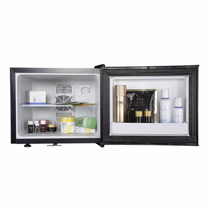 Ausgestattet mit 3 Fächern zur Aufbewahrung bietet er genug Platz für Masken, Cremes, Seren, Massagestäbe, Drinks und vieles mehr. Im Kühlschrank selbst befindet sich eine Platte, die den Stauraum in 2 Fächer teilt. Sie können die Platte auch herausnehmen und ein einziges, großes Fach erschaffen. Zusätzlich befindet sich in der Tür ein Fach.