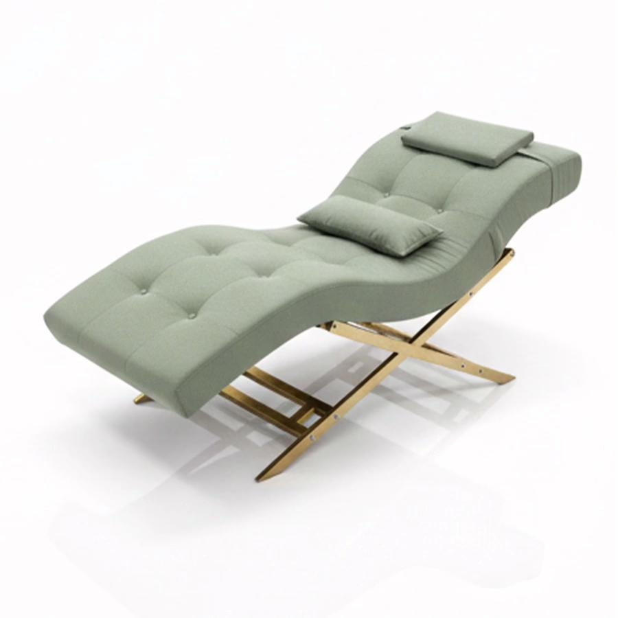 Ihre geschwungene, ergonomische Form lädt zum Hinlegen und Entspannen ein, während der samtweiche Bezug sanft die Haut umschmeichelt. Die beiden perfekt platzierten Kissen bieten genau dort Unterstützung, wo sie gebraucht wird. Das abnehmbare Nackenkissen sowie das zusätzliche Rückenkissen verleihen dem Liegekomfort den letzten Feinschliff.