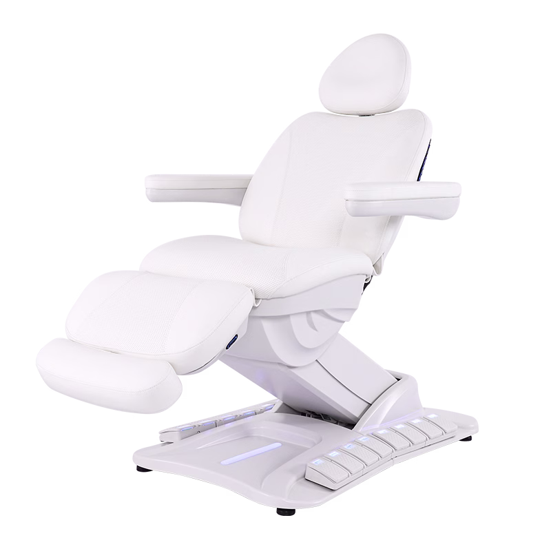 Alle Funktionen lassen sich bequem über die praktischen Fußschalter am Sockel steuern. So bleiben Ihre Hände jederzeit frei und Sie können Ihre Behandlung ohne Unterbrechung fortführen. Die Armlehnen lassen sich per Hand um 180° nach oben klappen und ermöglichen Ihren Kunden ein besonders leichtes Auf- und Absteigen.
