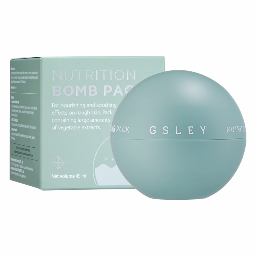 Die GSLEY Nutrition Bomb Pack ist, was ihr Name vermuten lässt: eine echte Nährstoff-Bombe! Verpackt in einem kugelförmigen Tiegel ist die cremige Maske randvoll gefüllt mit einer Vielzahl an pflanzenbasierten Extrakten, die die Haut intensiv nähren und irritierte Haut beruhigen.