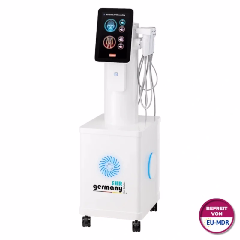 Zum krönenden Abschluss oder als erfrischende Vorbereitung bietet dieses RF Microneedling Gerät von SHR Germany ein drittes Handstück, das die Haut wunderbar abkühlt. Der Behandlungsbereich wird dabei weniger schmerzempfindlich.