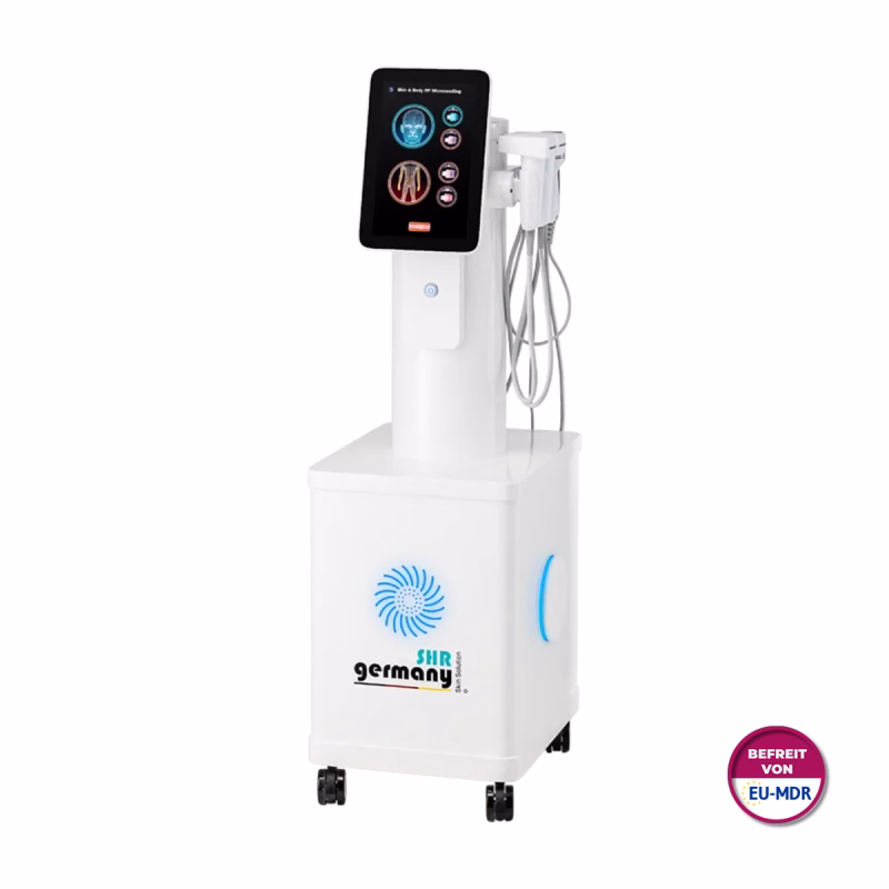 Zum krönenden Abschluss oder als erfrischende Vorbereitung bietet dieses RF Microneedling Gerät von SHR Germany ein drittes Handstück, das die Haut wunderbar abkühlt. Der Behandlungsbereich wird dabei weniger schmerzempfindlich.