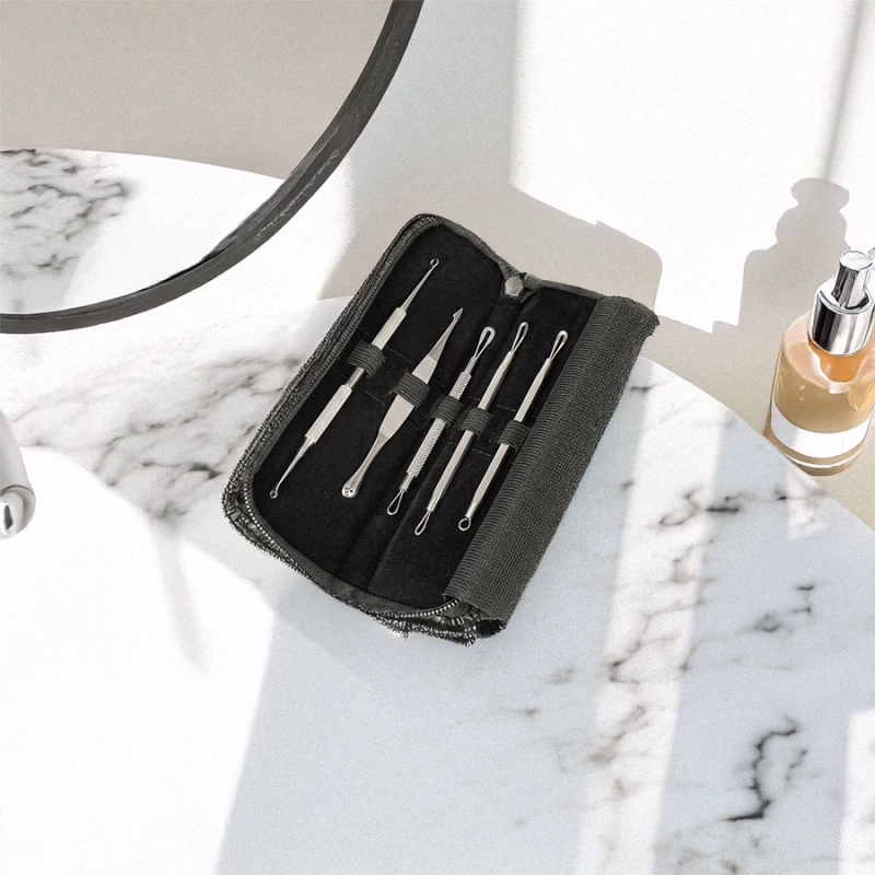 Sämtliche Tools bestehen aus rostfreiem Edelstahl und überzeugen mit rutschfesten Griffen sowie einer ergonomischen Form, die angenehm in der Hand liegt. Das hochwertige Material ist leicht zu reinigen und zu desinfizieren. Mit diesem Set lässt sich die Behandlung von Hautunreinheiten professionell, hygienisch und sicher durchführen.