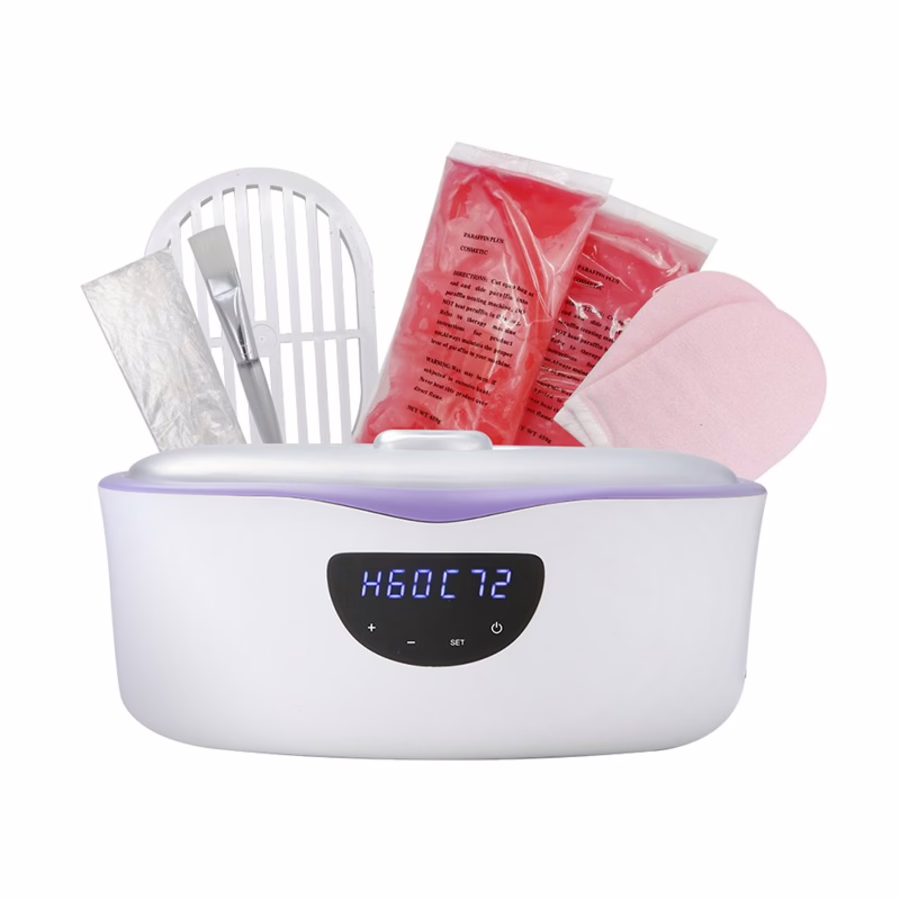 Mit seiner ansprechenden Gestaltung in weiß und lila überzeugt das Gerät optisch und stellt mit einem Fassungsvermögen von 4 Litern sicher, dass Sie Ihre Hände und Füße optimal mit einem Wachsbad verwöhnen können. Und das gleich mehrmals, denn in dem Set sind 3 x 450 Gramm Paraffin enthalten (erzielt Temperaturen von 35-75 ℃).