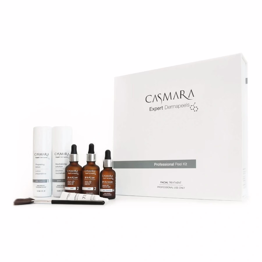 Umfassendes Set für ein intensives und effektives Peeling und eine gepflegte und geschützte Haut nach der Anwendung! Die Casmara Expert DermaPeels sind eine Reihe von innovativen chemischen Peelings, die für eine umfassende Hauterneuerung sorgen. Sie haben sowohl einen regenerierenden als auch einen Anti-Aging-Effekt, da sie die Zellaktivität stimulieren und die Hautelastizität verbessern. Zwei neuartige Formeln enthalten eine optimale Mischung an Säuren, um sichtbare Ergebnisse zu garantieren.