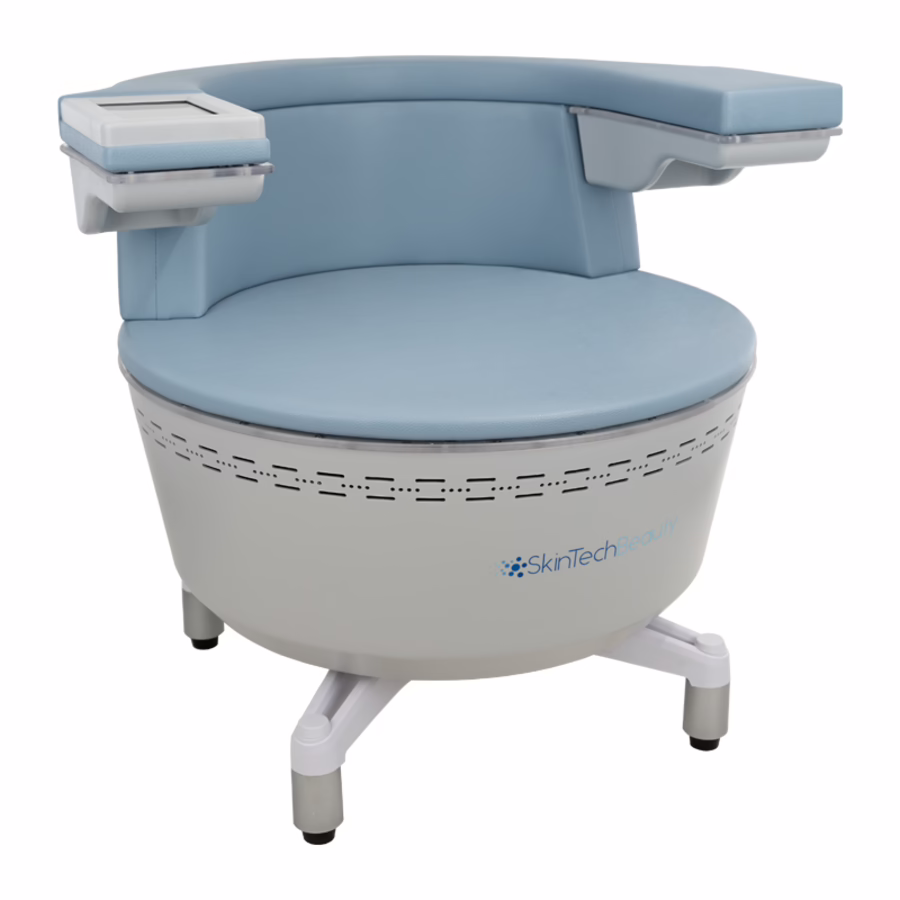 Neben der unschlagbaren Wirkung überzeugt der SkinTechBeauty EMS PelviChair XS Pro auch mit seinem Design. Sein moderne Sessel-Optik ist ein echter Hingucker. Highlight sind die LED-Leisten an der Sitzfläche und den Armlehnen. Das sanfte, blaue Licht sorgt für ein gemütliches Ambiente und passt perfekt zu der himmelblauen Polsterung.
