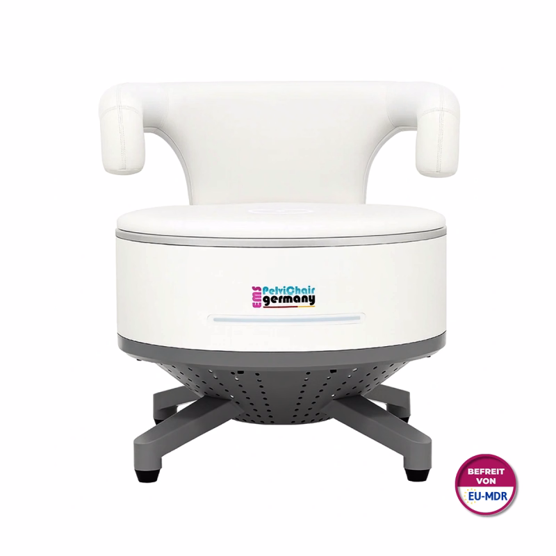 Verabschieden Sie sich von zeitaufwendigen, anstrengenden Kegelübungen und bieten Sie Ihren Kunden eine effektivere und vollkommen anstrengungsfreie Alternative: Den EMS PelviChair Max!
