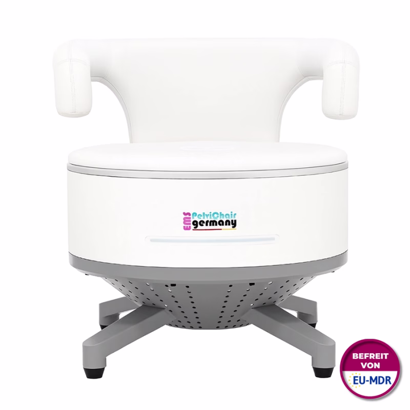Verabschieden Sie sich von zeitaufwendigen, anstrengenden Kegelübungen und bieten Sie Ihren Kunden eine effektivere und vollkommen anstrengungsfreie Alternative: Den EMS PelviChair Max!