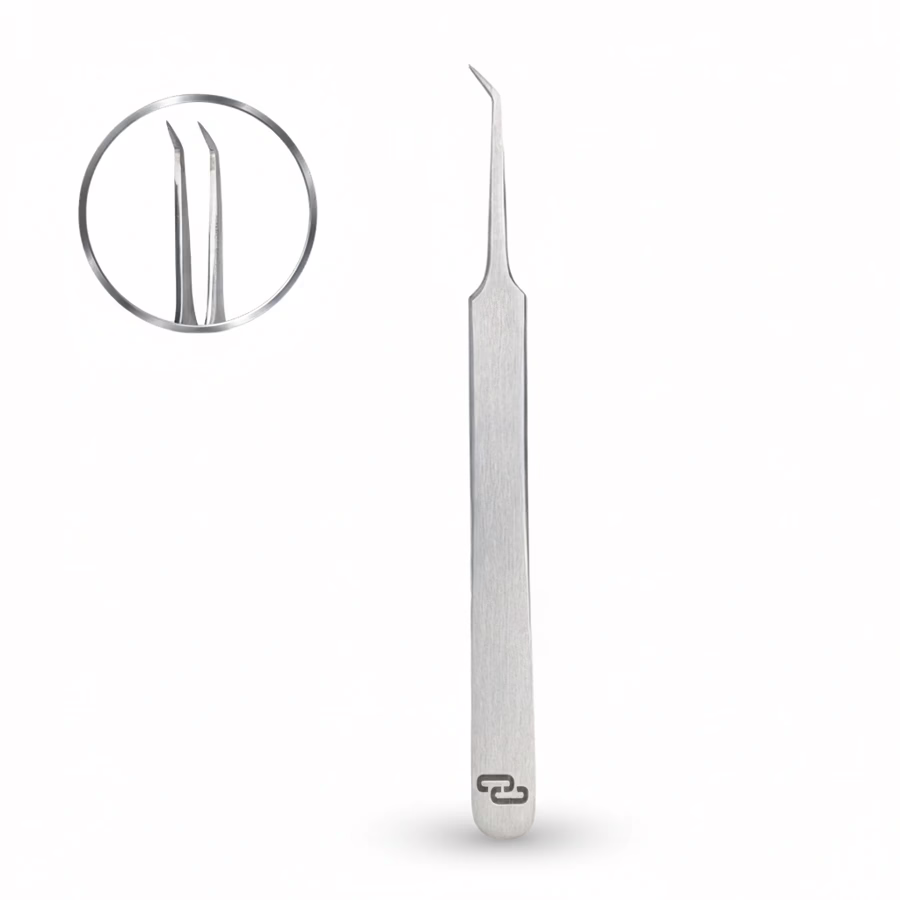 Dank der Kombination aus abgewinkeltem Endstück und schmaler Spitze ermöglicht sie ein unkompliziertes und effizientes Arbeiten mit allen Arten von Wimpernextensions.