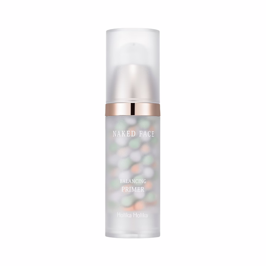 Mit dem Holika Holika Naked Face Balancing Primer gleichen Sie einen unebenen Teint wie von Zauberhand aus. Die in der Flasche enthaltenen Primer-Perlen haben die Farben Grün, Violett und Pfirsich. Die mit grünem Tee angereicherte grüne Perle kaschiert Rötungen im Gesicht. Violett hilft mit Lavendel-Extrakt bei einem fahlen und gräulichen Hautton, und die Wirkstoffe von Hagebutte in der pfirsichfarbenen Perle verleihen dem Gesicht ein gesundes Strahlen. Dank Inhaltsstoffen wie Niacinamiden und Hyaluronsäure wird die Haut außerdem gepflegt und mit Feuchtigkeit versorgt.