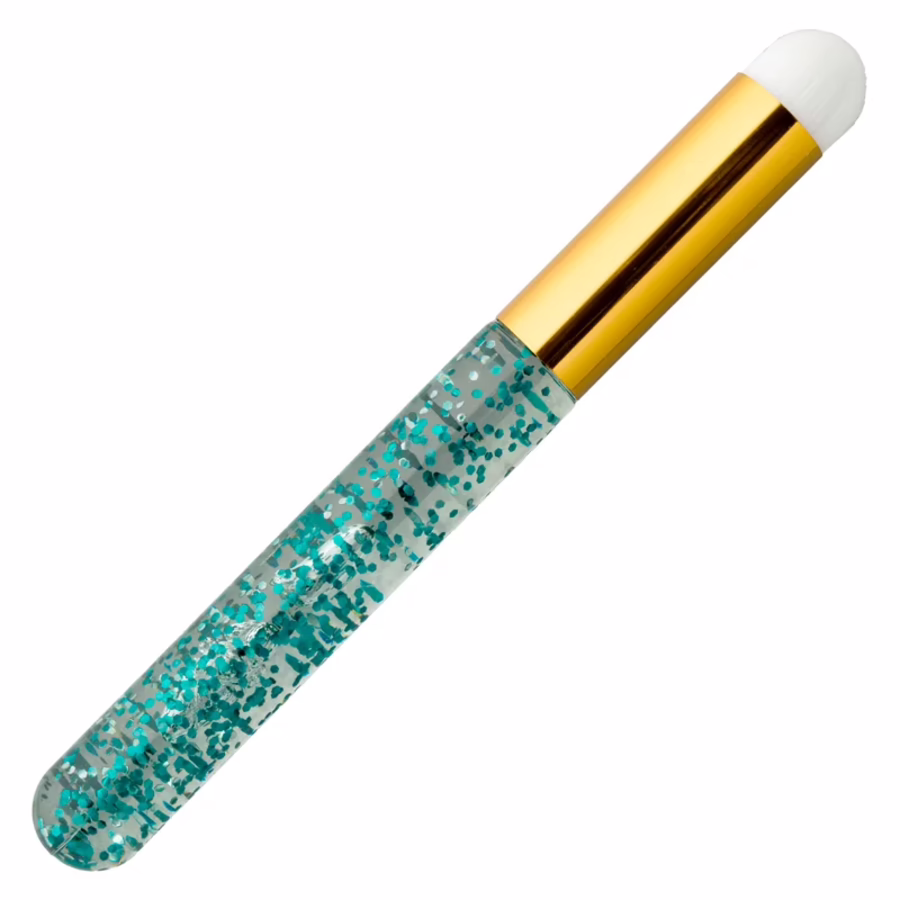 Weil sich im Beautybusiness eben alles um ein schönes Äußeres dreht, kommt auch der Pinsel in wunderschönem, auffälligem Design: Sein transparenter Stil ist in kräftigem Grün gefärbt. Darin funkeln tausende kleine Glitzerpartikel und machen ihn zu einem Tool mit echtem Glamourfaktor!