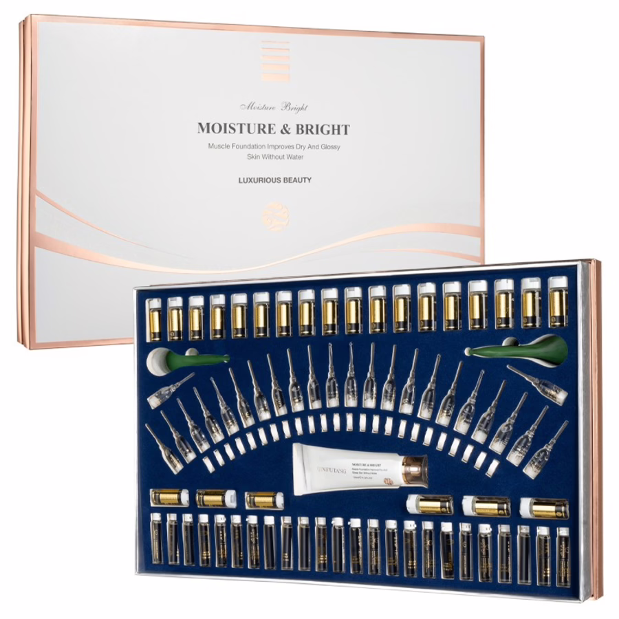 Oxygen Peptide Snow Skin Soothing Water(24X10ml): Water, Propylene Glycol, Glycerin, Dimethicone, Aloe Barbadensis (ALOE BARBADENSIS) Extract, Niacinamide, Ethylhexyl Palmitate, Isohexadecane, Chlorphenesin, Methylparaben, Triethanolamine, methylparaben, camellia (CAMELLIA JAPONICA) seed oil.
