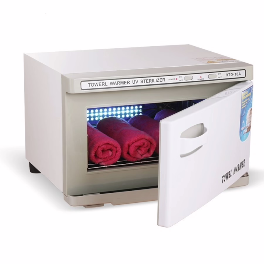 Der UV-Sterilisator und Handtuchwärmer fasst 23 Liter und ist unerlässlich zur Erhaltung des höchsten hygienischen Standards. Durch die integrierte UV-Lampe werden Handtücher und Kompressen effektiv sterilisiert, gleichzeitig können diese erwärmt werden – so bieten Sie Ihren Kunden eine luxuriöse und professionelle Behandlung! Der Sterilisator und Handtuchwärmer erhitzt auf 80°C und ist durch den automatischen Überhitzungsschutz vollkommen sicher und unkompliziert in der Anwendung.