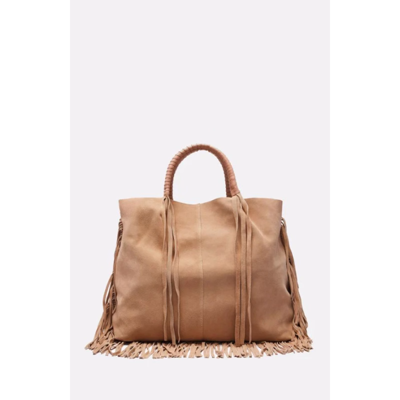 Natürlich, edel, geräumig: Der Velours-Shopper in Sand kombiniert sanfte Texturen mit einem zeitlosen Design.