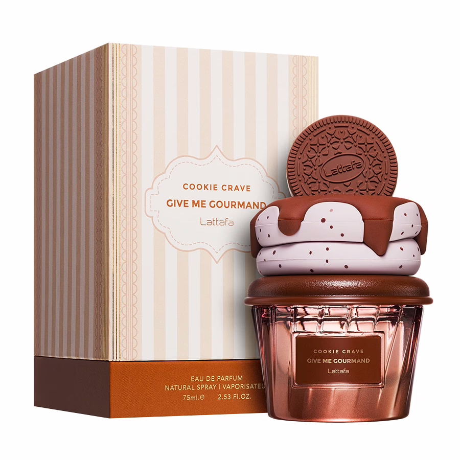 In der Parfumwelt bezeichnet „Gourmand“ Düfte, die an köstliche Leckereien und Süßspeisen erinnern – und das Lattafa Cookie Crave aus der „Give Me Gourmand“-Produktreihe gehört mit seinem einzigartigem Keks-Aroma definitiv dazu.