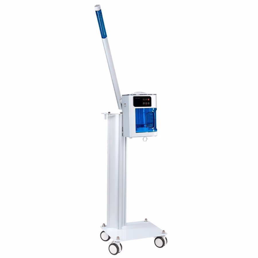Die Anwendung ätherischer Öle und chinesischer Kräutermedizin während der Dampfbehandlung fördert die Heilung von Akne und lässt Pigmentflecken verblassen. Die Aromatherapiefunktion sorgt für ein langanhaltendes Wellnesserlebnis für Haut und Seele. Die Behandlungszeiten sind per Timer einstellbar. Die automatische Wasserstand-Überwachung ist benutzerfreundlich und beugt technischen Problemen vor. Das edle Design in silbernem Edelstahl und meeresblauem Glas wertet die Einrichtung jedes Studios optisch auf.