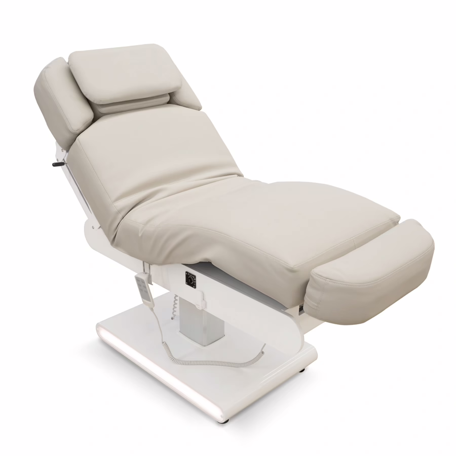 Die Höhe, die Rückenlehne und die Beinstütze lassen sich mithilfe dreier leistungsstarker, dennoch leiser Motoren einfach und problemlos anpassen. Damit bringen Sie Ihren Kunden ohne Mühen in die perfekte Position, um Ihre erstklassigen Behandlungen durchzuführen.