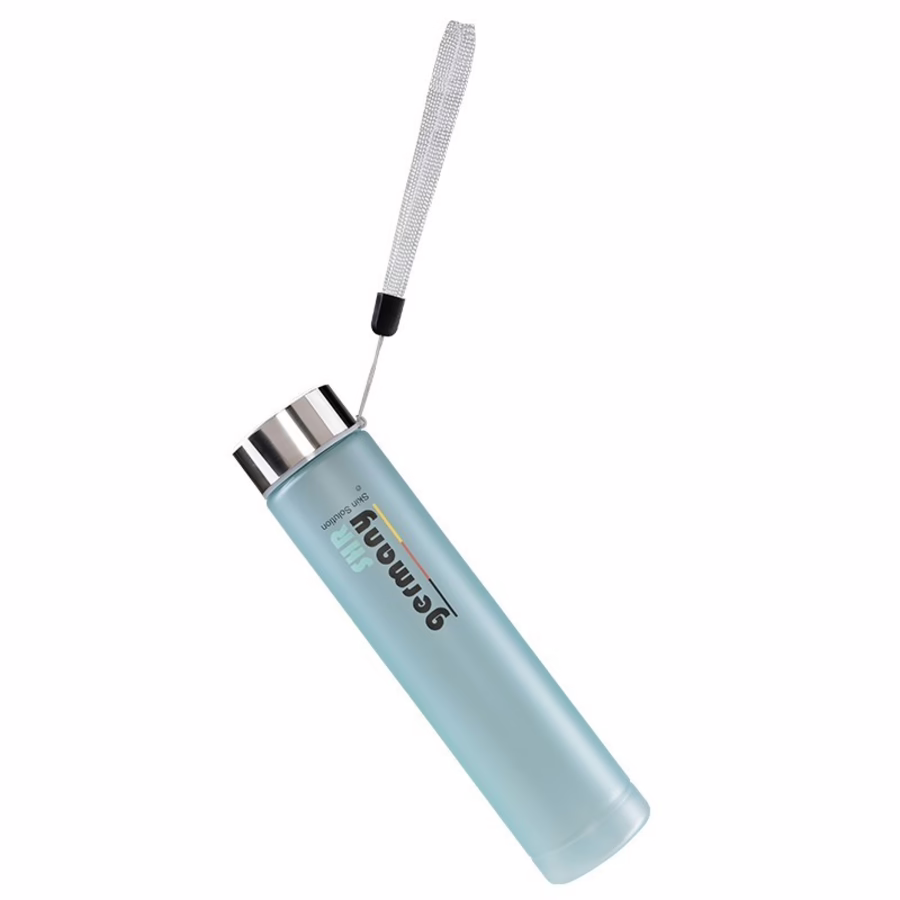 Ob nach einer Behandlung in Ihrem Studio, einer Pause im Büro, auf Reisen, Tagungen, oder wo immer Sie mögen: Die SHR Trinkflasche ist ein zuverlässiger Begleiter für den kleinen Durst zwischendurch. Formschön in meeresfarbenem Türkis und mit einem klaren, schwarzem Schriftzug mit SHR Germany versehen, fasst sie 300 ml Flüssigkeit, erfrischt aber schon beim Anblick.
