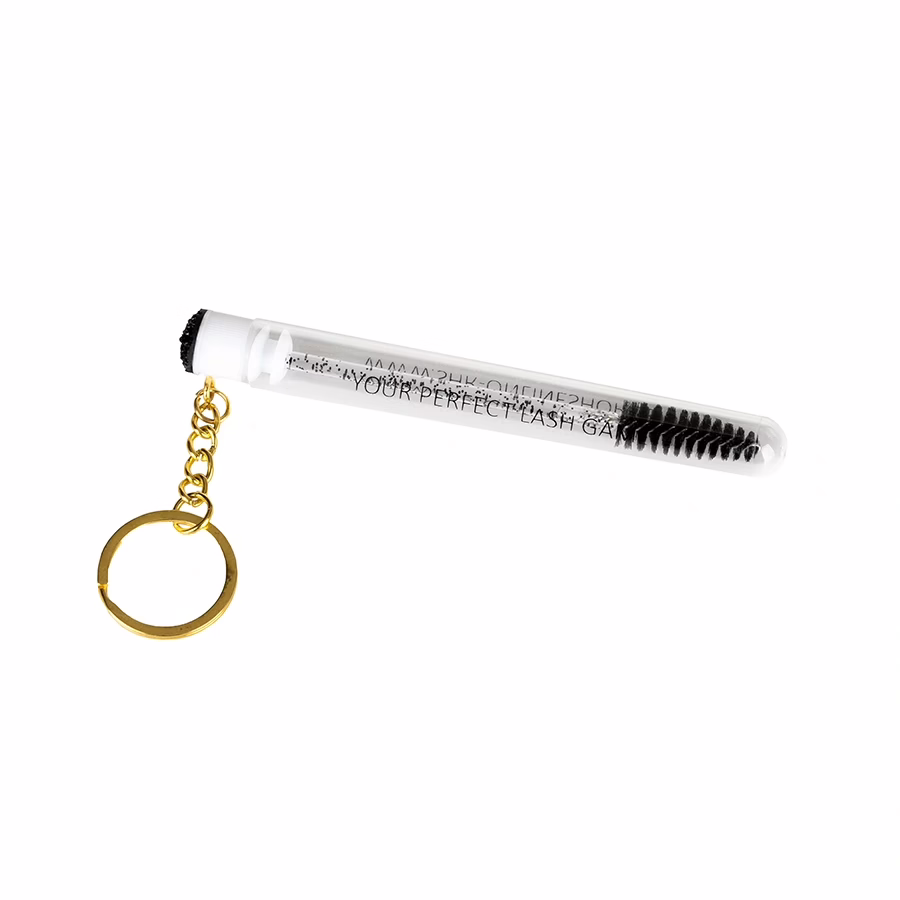 Er wird von einem durchsichtigen Kunststoff-Röhrchen geschützt und ist am oberen Ende mit einem zarten goldenen Kettchen mit Schlüsselring versehen. So lässt sich das Schmink- und Pflegeutensil schnell und einfach an Ihrem Schlüsselbund und vielem mehr befestigen, ohne verloren zu gehen.