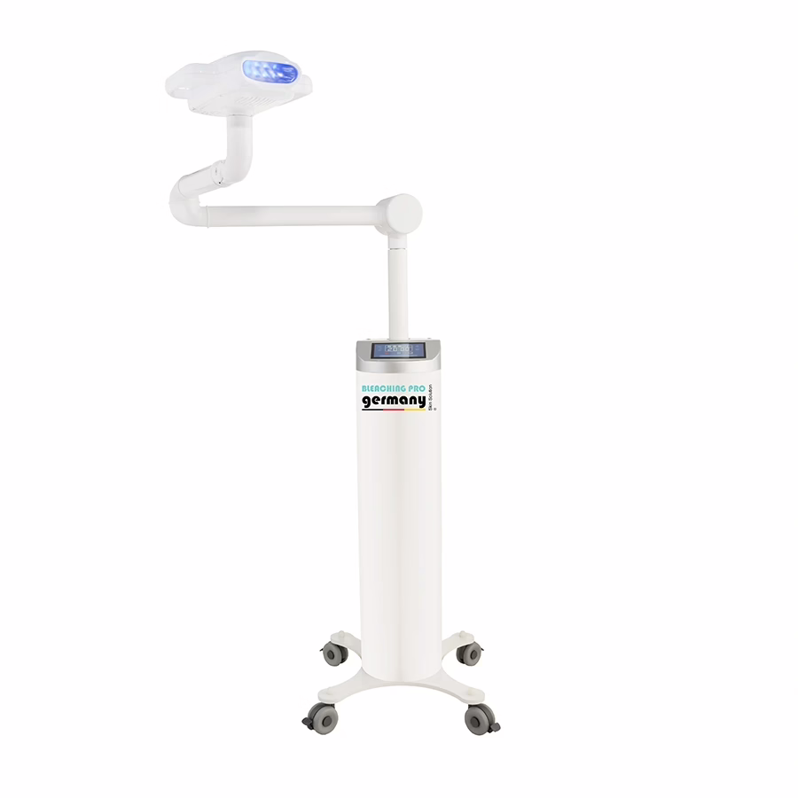Das topmoderne, weiße Design vermittelt absolute Stabilität und erhält durch die silbernen Akzente einen edlen Touch. Mithilfe vier robuster und fixierbarer Rollen können Sie das Zahnbleaching Pro Gerät bequem von einem Standort zum nächsten bewegen und bleiben so dynamisch.