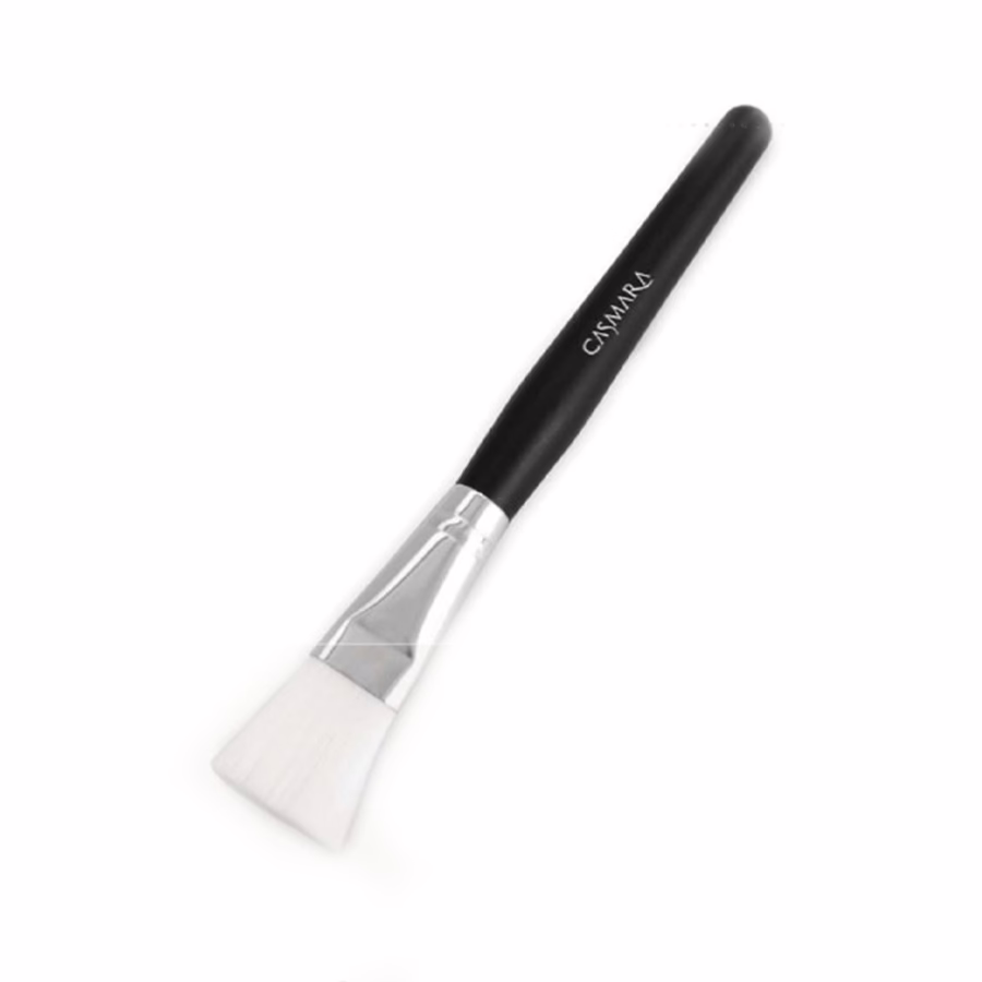 Der elegante Pinsel aus schwarzem Holz und Nylon ist speziell zum Auftragen von Produkten bei Gesichtsbehandlungen gedacht.